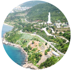 Một địa danh gắn liền cùng tên tuổi, một vị thế độc đáo nằm giữa lòng thành phố, một điểm đến tâm linh đầy huyền bí và lôi cuốn, đã hình thành nên kiểu kiến trúc vô cùng lạ mắt, chính giữa là 5 quả núi thiêng tượng trưng cho 5 thuộc tính phong thủy, nơi khởi nguồn của những dòng chảy sinh mệnh.
